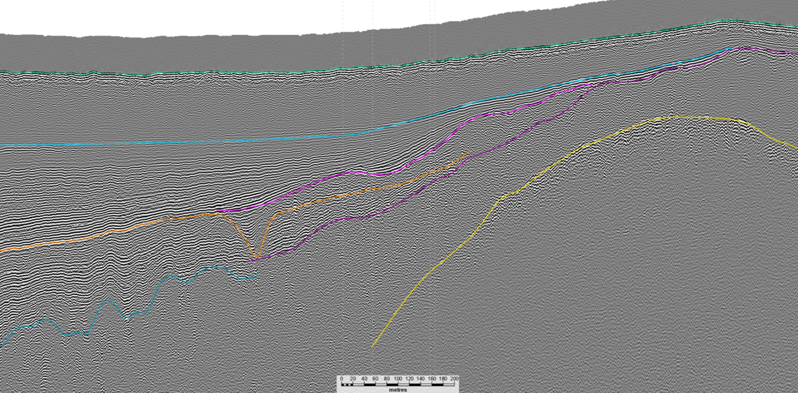 Previous projects have included re-processing seismic profiles to increase resolution at depth and analysis of multi-beam echo sounder data to identify issues within the data and provide solutions.